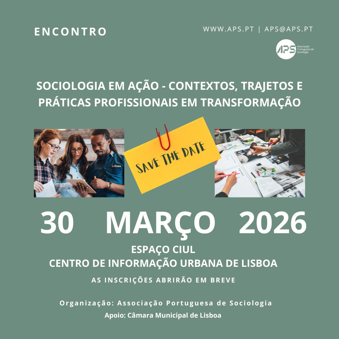 A Direção da APS organiza o Encontro: Sociologia em Ação - Contextos, trajetos e práticas profissionais em transformação 30 de março de 2026 Espaço CIUL Centro de Informação Urbana de Lisboa Organização: Associação Portuguesa [...]